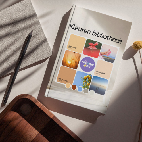 Inspirerende gids, 64 pagina’s. 24 Complete kleurpaletten + HEX-codes (Canva-klaar) met uitleg en variaties.